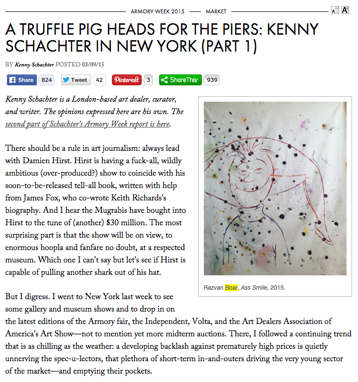 Article: A TRUFFLE PIG HEADS FOR THE PIERS: KENNY SCHACHTER IN NEW YORK (PART 1)