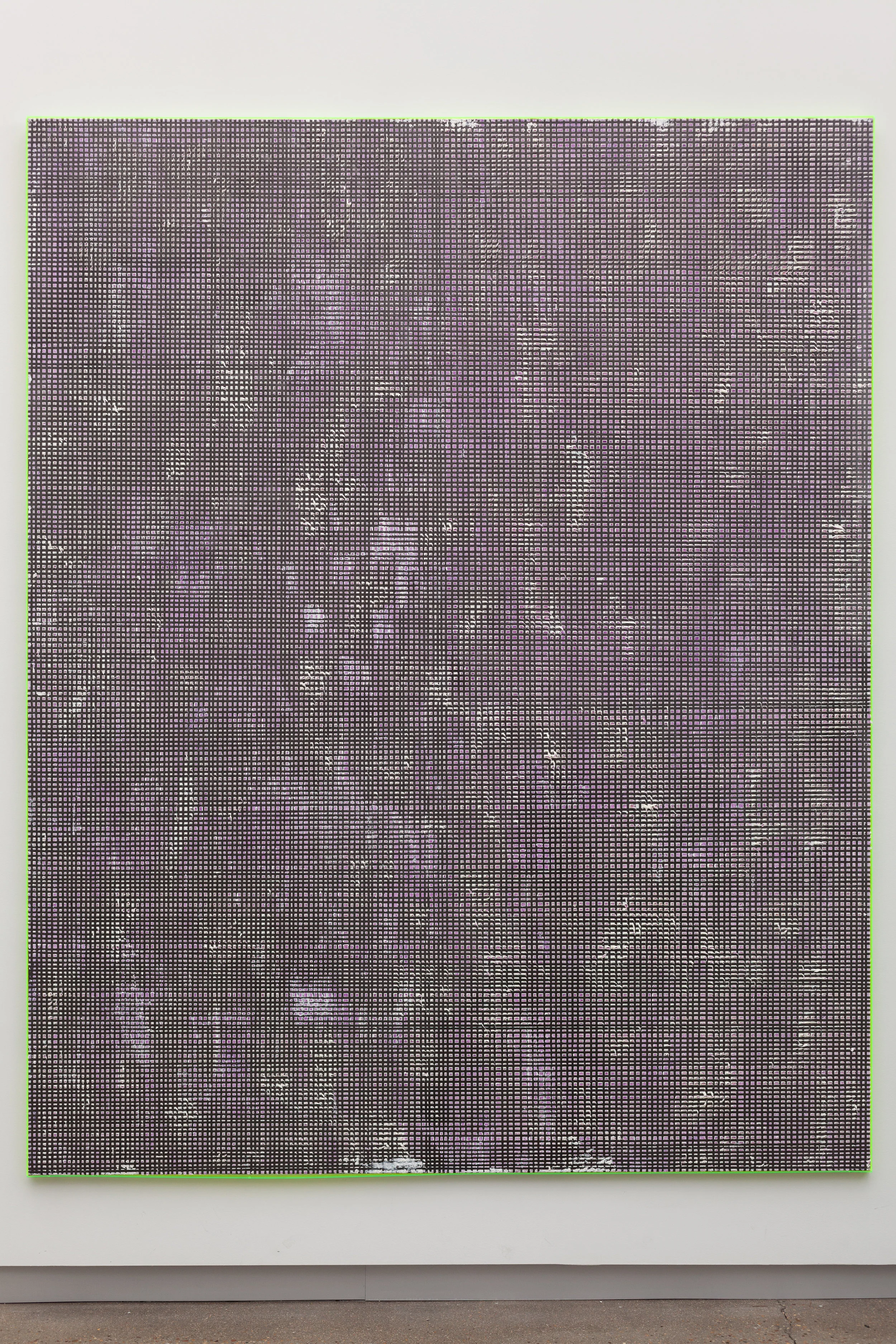 Oil and spray-paint on canvas. Artist made frame (green acrylic)